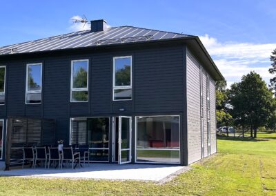 Vi kan nu erbjuda boende i våra fyra nya parhus. Parhus med 2 lägenheter i varje hus, totalt 64 stycken bäddar. Lägenheterna på två våningar är ljusa och luftiga med stora glaspartier samt klinkers på golvet i kök/vardagsrum samt helkaklade badrum. Varje lägenhet innehåller fullutrustade kök med vardagsrum, 4 sovrum med två bäddar i varje samt 2 toaletter med dusch.